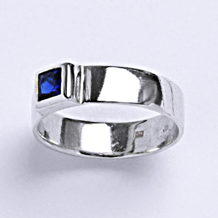 Stříbrný prsten se spinelem. Velikost spinelu je 4 x 4 mm. Materiál je stříbro 925/1000. Prsten má povrchovou úpravu čisté rhodium.