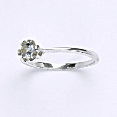Stříbrný prsten s akvamaríem. Velikost zirkonu je 4 mm. Materál je stříbro 925/1000. Prsten má povrchovou úpravu čisté rhodium.