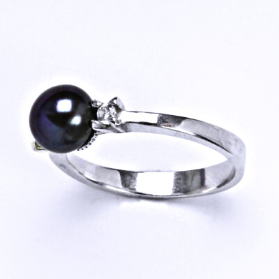 Stříbrný prsten s černou přírodní perlou 8 mm, T 1207