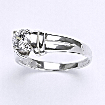 Stříbrný prsten s čirým zirkonem. Materiál je stříbro 925/1000. Prsten má povrchovou úpravu čisté rhodium.