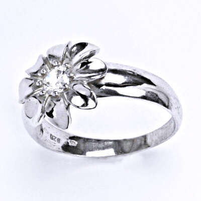Stříbrný prsten s čirým zirkonem,kytička, T 1389 A