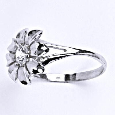 Stříbrný prsten s čirým zirkonem, kytička, T 1389 B