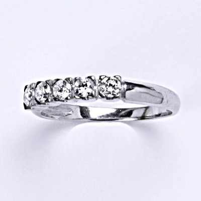 Stříbrný prsten s pěti syntetickými čirými zirkony. Průměr zirkonu je 3 mm. Materiál je stříbro 925/1000. Prsten má povrchovou úpravu čisté rhodium.
