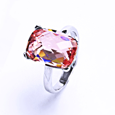 Stříbrný prsten s krystalem Swarovski barvy Light rosel.Velikost krystalu - 14x10 mm.Tyto šperky jsou s povrchovou úpravou - čisté Rhodium, která nezpůsobuje žádné alergie.K prstenu nabízíme i náušnice nebo přívěsek do soupravy.
