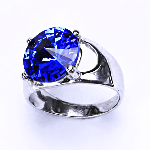 Stříbrný prsten s průřezy na stranách.K výrobě byl použit krystal Swarovski velikosti 12mm.Barva Saphhire.Na tyto prstenové šperky byla použita povrchová úprava čisté Rhodium,která nezpůsobuje žádné alergické reakce.K tomuto prstenu lze na našem E-shop