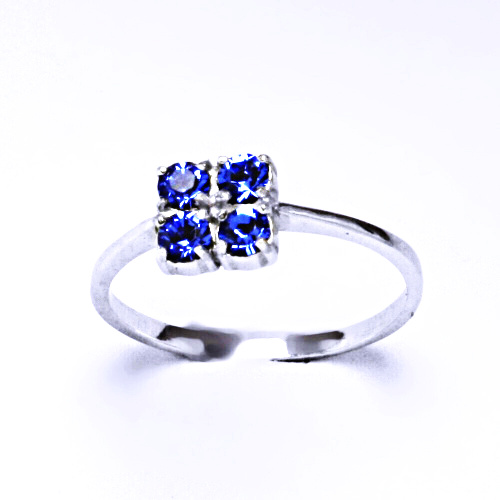 Stříbrný prsten s krystaly Swarovski. Barva Saphire. Kameny jsou pevně uchyceny do krapen tak, aby nemohly vypadnout. Záruka na vypadávání kamenů. Velikost kostičky je 7 x 7 mm. Tyto šperky jsou s povrchovou úpravou čisté rhodium.