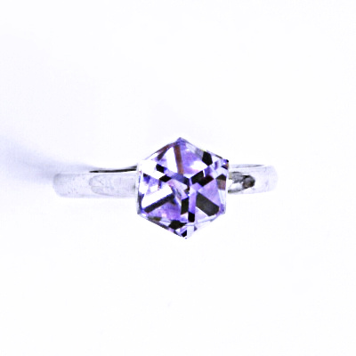 Stříbrný prsten s krystalem Swarovski.Krychle má velikost 6x6 mm.Barva Violet.Velmi kvalitní přilepení minimalizuje riziko ztráty.Tyto šperky mají povrchovou úpravu - čisté Rhodium,které nevyvolává žádné alergické reakce.K tomuto prstenu nabízí náš E-s
