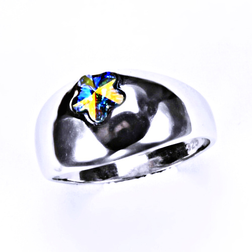 Stříbrný prsten s krystalem Swarovski ( kytička 6 mm - AB Crystal)T 1301
