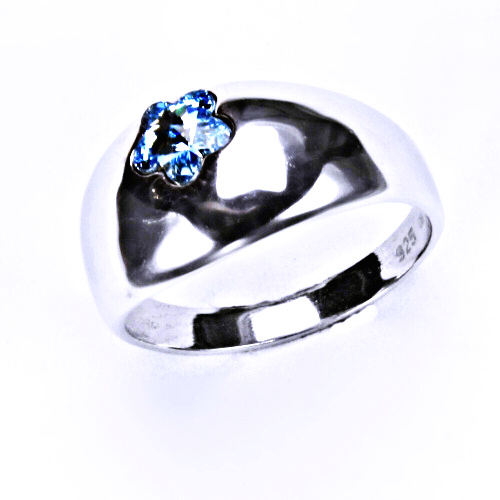 Stříbrný prsten s krystalem Swarovski ( kytička 6 mm - Akvamarin)T 1301