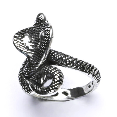 Stříbrný prsten s patinou, kobra, prsten ze stříbra ve tvaru kobry, T 227