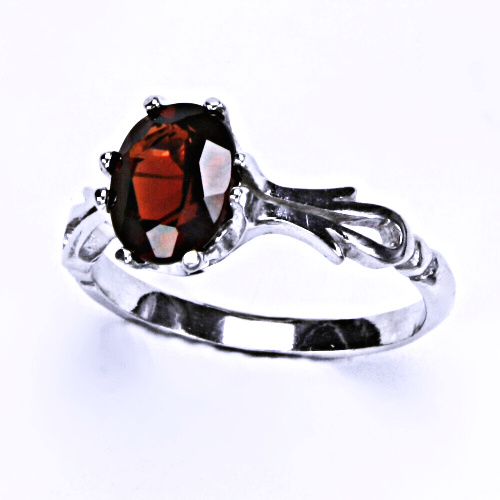 Stříbrný prsten zdobí přírodní granát, ovál o velikosti 9 x 7 mm