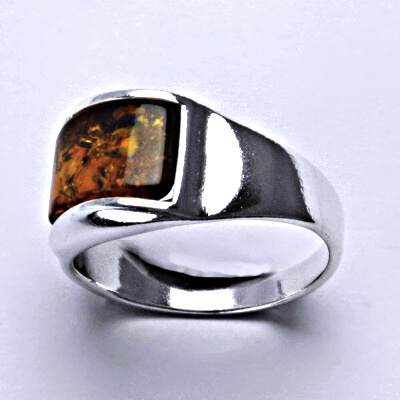 Stříbrný prsten s přírodním jantarem, prsten ze stříbra, jantar, 4,99 g