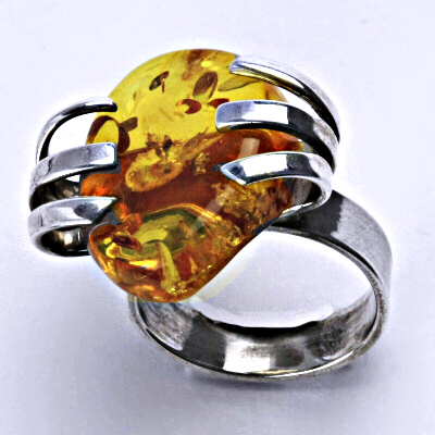 Stříbrný prsten s přírodním jantarem, prsten ze stříbra, jantar, 9,23 g