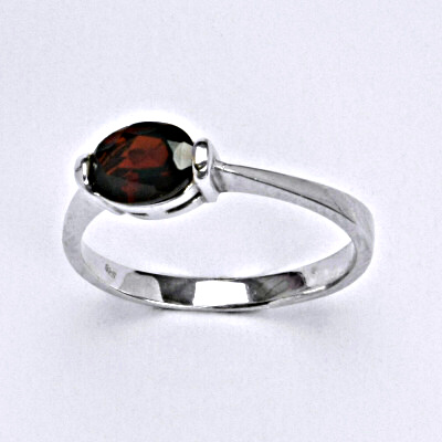 Stříbrný prsten s přírodním granátem. Velikost přírodního kamene je 7x5 mm. Materiál je stříbro 925/1000.