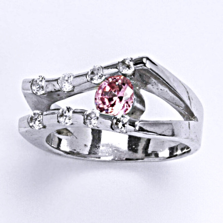 Stříbrný prsten s růžovým a čirými zirkony, VR 301