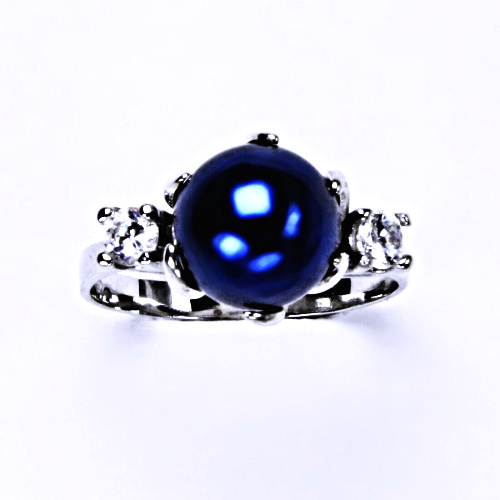Stříbrný prsten s umělou perlou tm. modrá 10 mm T 1190 poslední kusy