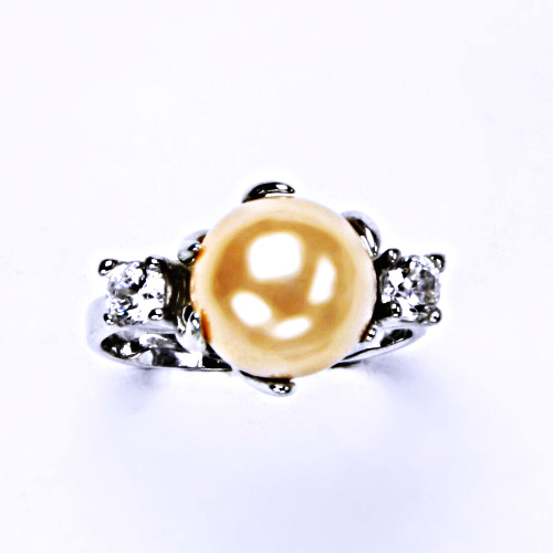 umělá perla 10 mm světlá lososová, Stříbrný prsten, šperky