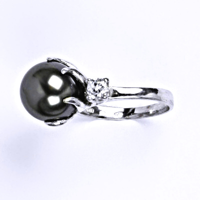 Stříbrný prsten se Swarovski perlou dark grey, T 1190