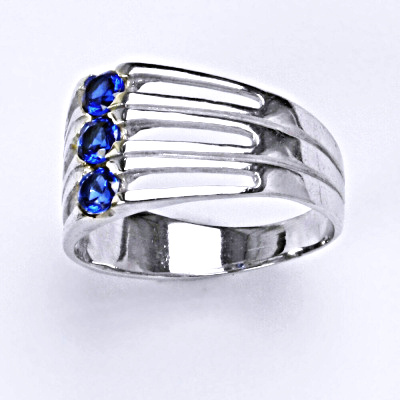 Stříbrný prsten se třemi syntetickými spineli. Průměr spinelu je 3,5 mm. Materiál je stříbro 925/1000. Prsten má povrchovou úpravu čisté rhodium.
