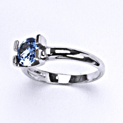 Stříbrný prsten se syntetickým akvamarínem, T 1273