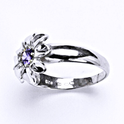 Stříbrný prsten se syntetickým ametystem,kytička, T 1389 A
