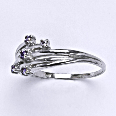 Stříbrný prsten se syntetickým ametystem. Prsten má povrchovou úpravu čisté rhodium. Materiál je stříbro 925/1000.