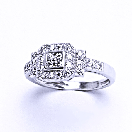 Tento stříbrný prsten je bohatě osázen zirkony čiré barvy. Velikost každého zirkonu je 1 x 1 mm. Prsten patří mezi šperky s povrchovou úpravou čistého rhodia. Materiál je stříbro 925/1000.