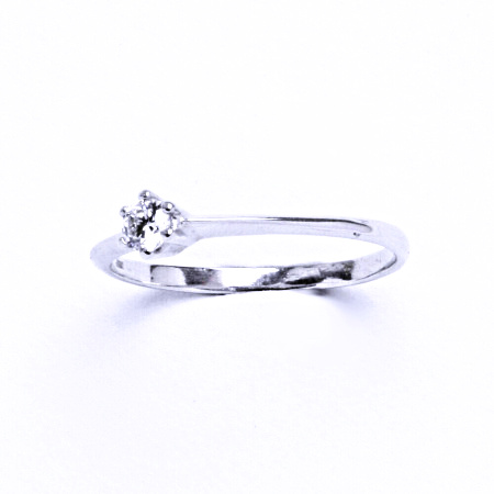 Tento stříbrný prsten je zdoben čirým zirkonem o velikosti 3 x 3 mm. Prsten patří mezi šperky s povrchovou úpravou čistého rhodia. Materiál je stříbro 925/1000.