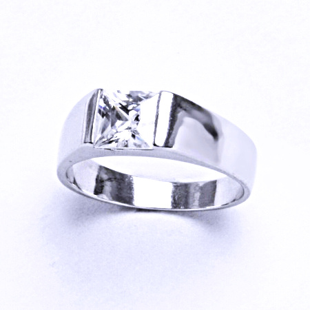 Tento stříbrný prsten je zdoben čirým zirkonem o velikosti 6 x 6 mm. Prsten patří mezi šperky s povrchovou úpravou čistého rhodia. Materiál je stříbro 925/1000.