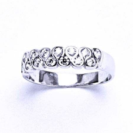 Tento stříbrný prsten je zdoben čirými zirkony. Prsten patří mezi šperky s povrchovou úpravou čistého rhodia. Materiál je stříbro 925/1000.