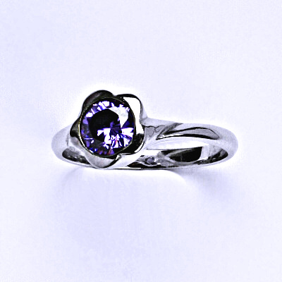 Stříbrný prsten se syntetickým zirkonem ametyst T 1271