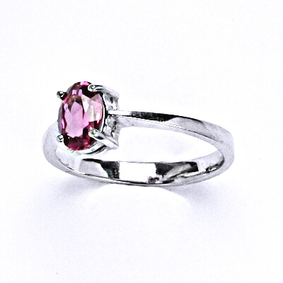 Stříbrný prsten se syntetickým zirkonem fuschsia 7x5 mm, T 1246