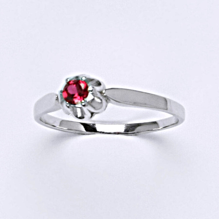 Prsten stříbrný se syntetickým zirkonem rubín. Velikost zirkonu je 3 mm. Material je stříbro 925/1000.