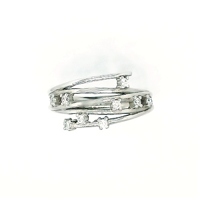 Tento stříbrný prsten je zdoben čirými zirkony. Prsten patří mezi šperky s povrchovou úpravou čistého rhodia. Materiál je stříbro 925/1000.