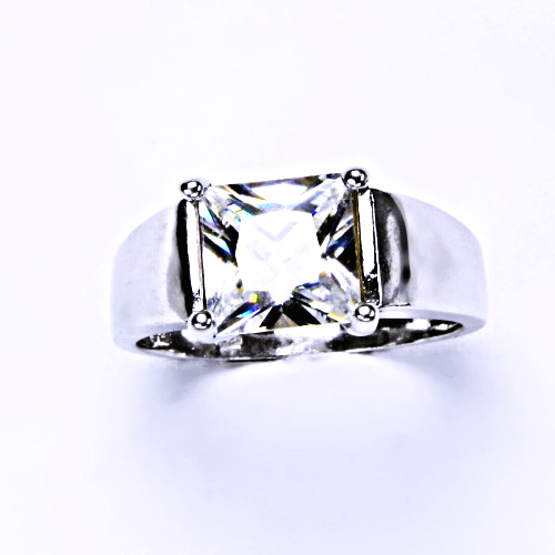 Do tohoto masivního stříbrného prstenu byl zafasován zirkon velikosti 8x8 mm.Prsten patří mezi šperky s povrchovou úpravou čistého Rhodia,které nezpůsobuje žádné alergie.