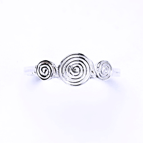 Stříbrný prstýnek - spirály. Materiál je stříbro 925/1000. Orientační váha prstenu ve velikosti 52 je 1,39 g. Rozměr zdobné části prstenu je 6,5x15 mm.