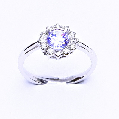 Stříbrný prsten, zirkon lavender, čiré zirkony, T 1495