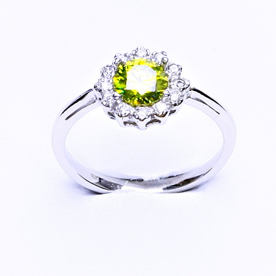 Stříbrný prsten, zirkon olivín, čiré zirkony, T 1495