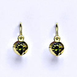 Zlaté dětské náušničky, syntetický olivín,žluté zlato, NK 1319