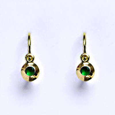 Zlaté dětské náušničky, zirkon emerald,žluté zlato, NK 1330