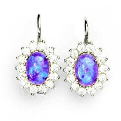 Zlaté náušnice Kate, bílé i žluté zlato, fialový synt. opál a čiré zirkony - NK 1507