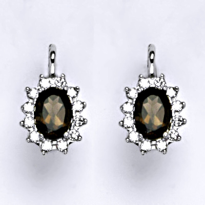 Zlaté náušnice s přírodní záhnědou a malými čirými zirkony. Velikost záhnědy je 7x5 mm. Materiál je bílé zlato 585/1000. Celková výška náušnice je 18 mm. Zapínání náušnic je na patent. Orientační váha náušnice 3,40 g.