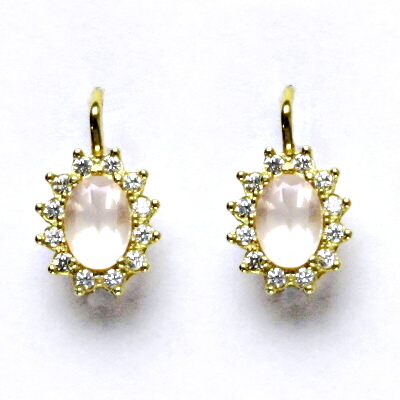Zlaté náušnice Kate, žluté i bílé zlato, přírodní růženín, čiré zirkony, NK 1480