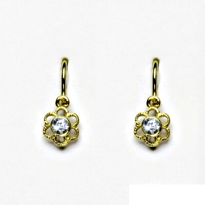 Dětské zlaté náušnice kytičky zdobené zirkonem.