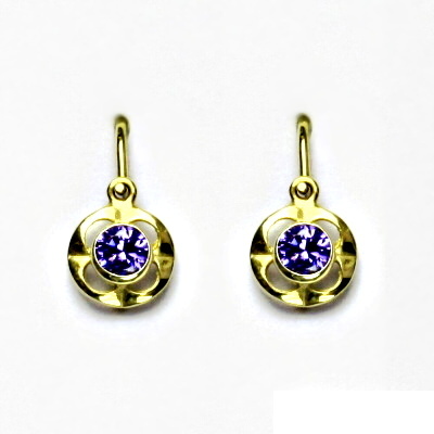 Zlaté náušnice, ametyst, žluté zlato, dětské náušnice NK 1380