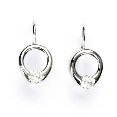 Náušnice z bílého zlata jsou zdobeny čirým zirkonem o průměru 3,5 mm. Materiál je zlato 585/1000. Orientační váha náušnic je 2,55 g. Celková výška náušnice je 17 mm. Šířka náušnice je 9 mm. Náušnice mají zapínání na klapku.