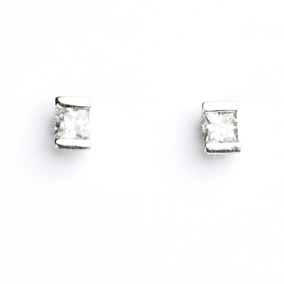 Náušnice z bílého zlata jsou zdobeny čirými zirkony o rozměru 3,5x3,5 mm. Materiál je zlato 585/1000. Náušnice mají zapínání na šroubek a jsou rhodiované.. Orientační váha náušnic je 1,45 g.