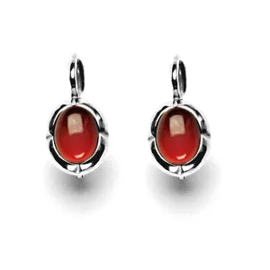 Zlaté náušnice, bílé zlato, přírodní červený achát, NK 1374