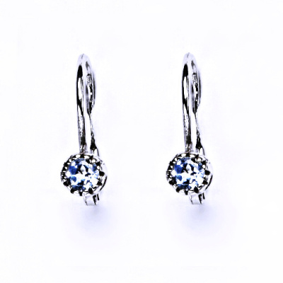 Zlaté náušnice na klasické patentové zapínání jsou zdobeny zirkonem akvamarinem