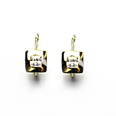 Náušnice ze žlutého zlata zdobí čiré zirkony čtvercového tvaru